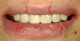 59歳・女性の患者様です。 主訴は他院にて入れ歯を入れられたものの馴染めなく、見た目も不満(金属が見える)ということでご友人のご紹介で当院を受診されました。 口腔内所見では歯間、歯頚部にプラークがみられ、出血しやすく歯ぐきが腫れた状態でした。 歯周基本治療の後、全顎的に治療させていただきました。